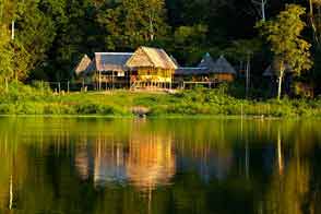 Ubicado en el margen derecho del río Momón, tranquilo y pacífico tributario del Amazonas, AMAZON CAMP está especialmente diseñado para armonizar con la densa selva que le rodea. Construido con materiales típicos de la zona, con iluminación eléctrica, los cuartos están protegidos por mallas y todos tienen baño privado, con hermosas vistas del río y de la selva. El albergue es capaz de proporcionar una experiencia cómoda y auténtica.