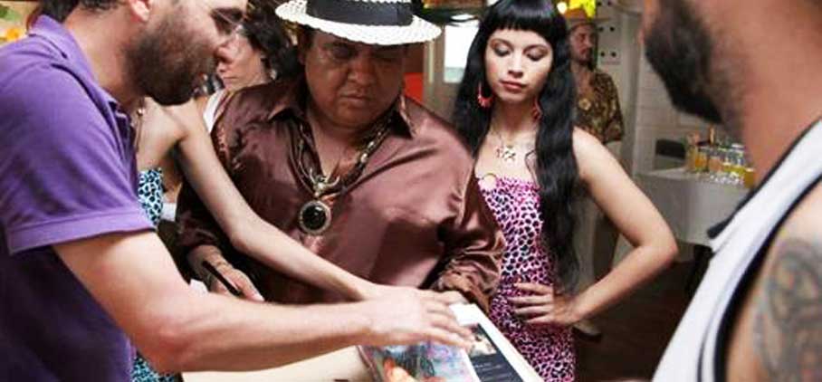 El variopinto reparto de “Diamond Santoro” incluye al popular cómico Manolo Rojas, quien en la película parece interpretar un cantante de cumbia, admirador de Diamond Santoro.